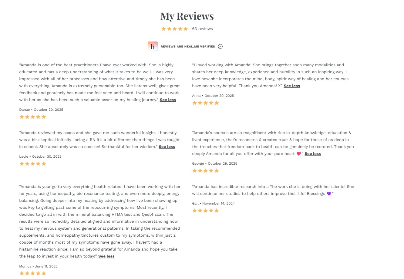 I’m Amanda — a licensed mental health counselor and masters level integrative practitioner specializing in highly sensitive, complex chronic cases. My work blends advanced science, clinical experience, and lived experience.
